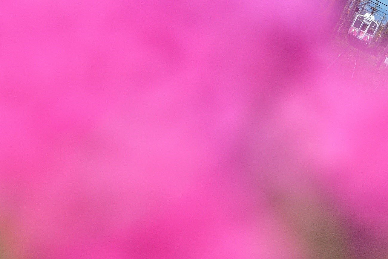桜と市電というとてもストレートな分かりやすいモチーフなのですが、この場所に立った時撮影者はあらかじめ欲しいイメージを想定してシャッターを切られています。前ボケに配した桜と、全体を明るくハイキーにしたことで具体性を引き算して絵画的に見せることに成功していますね。画面下側と右中央に薄緑が入っているのも桜と市電の暖色を引き立てるのに一役買っています。まさに100周年号が祝福されていますね。